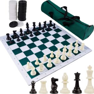 20″ Portable Chess & Checkers Set, 2 in 1 Travel Board Games for Kids and Adults, Folding Roll up Chess Game Sets, Extra 26 Checker Pieces, Tournament Thick Mousepad Mat with Storage Bag
