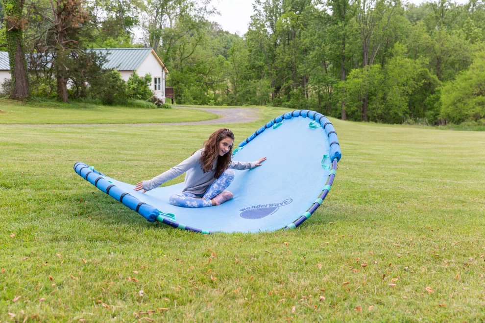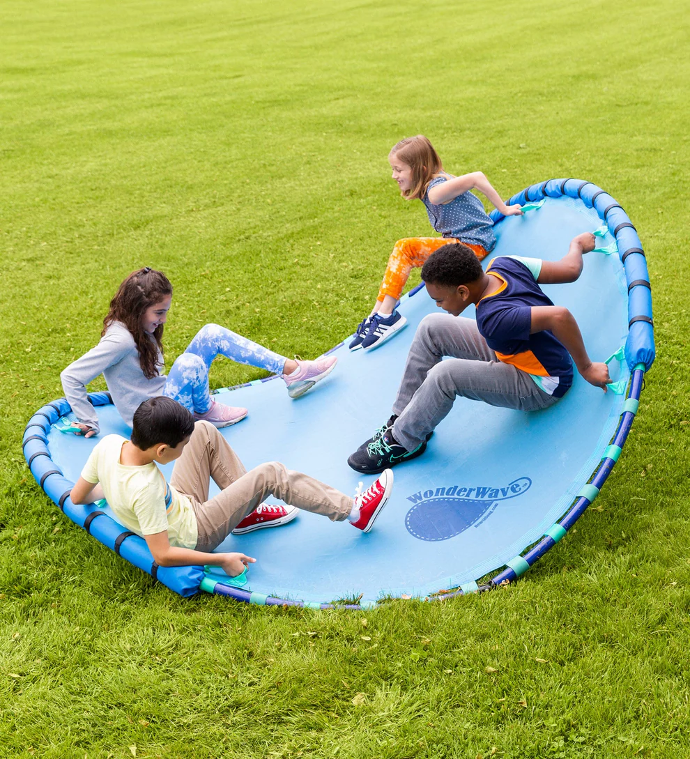 And there’s more than one way to enjoy this backyard WOW toy—rock back and forth with a friend (or 3 or 4, max. weight 500 lbs.), or just relax in the shade with this crescent-shaped hangout. (Psst—it’s a super fun way to sneak in some strength-building play.) We’ve even heard reports of adults enjoying the WonderWave after the kiddos have exhausted themselves! Take it along for play anywhere—it folds to about half its size so you can amaze friends and family at the campground or family reunion.