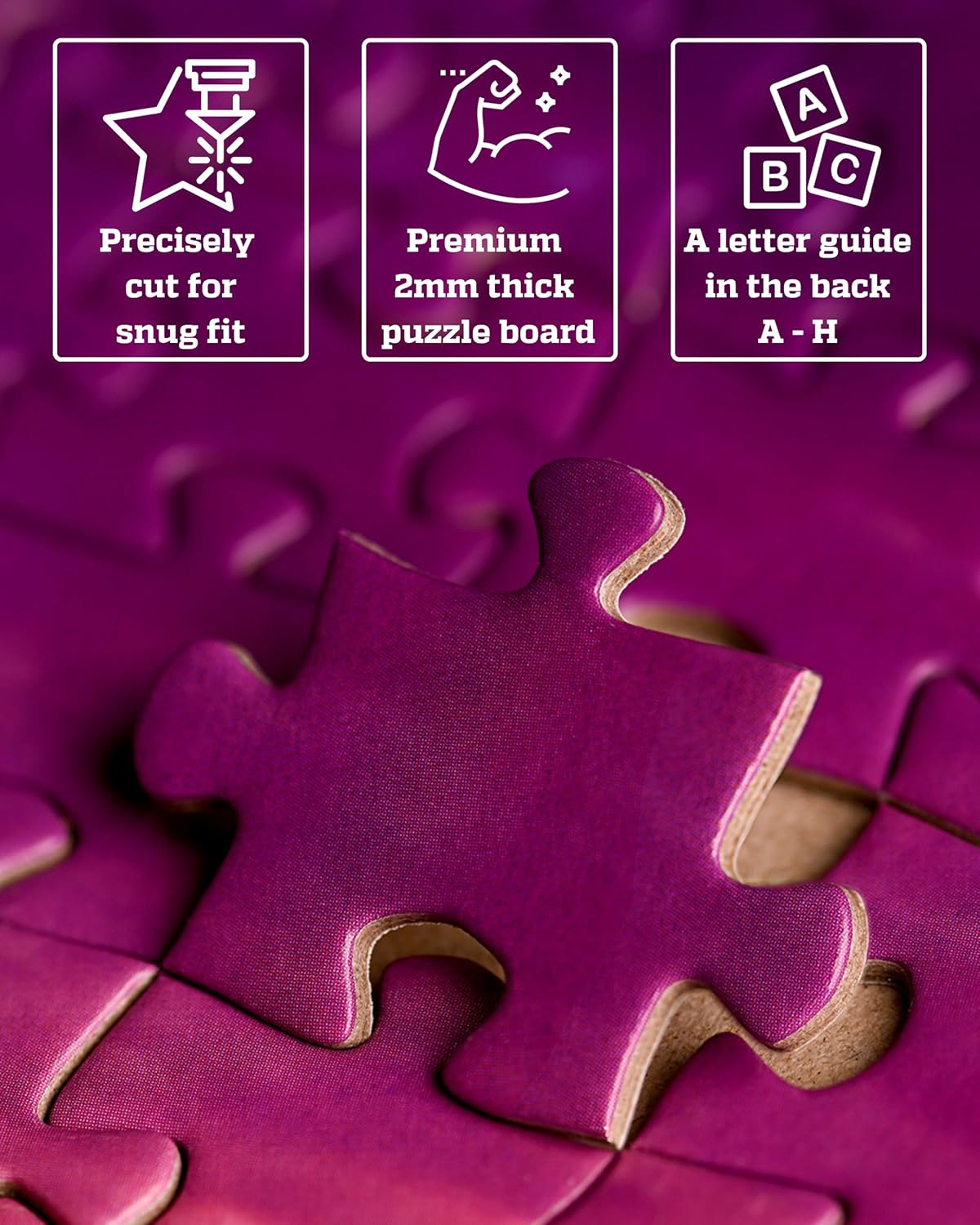 - AN ACTIVITY FOR THE WHOLE FAMILY: Puzzle time is bonding time, so gather the kids for some fun! The puzzle includes challenging areas for adults and detailed sections that kids can solve. The backs of the pieces also have letters beginners can use to match pieces, making it one of the most fun puzzles for adults and kids alike. With this 1000 puzzle, designed as one of the fun puzzles for adults, everyone can participate and enjoy the challenge together.